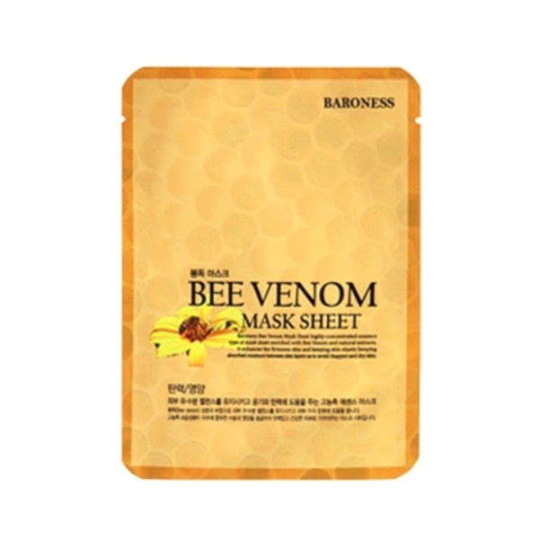 Baroness Bee Venom Mask Sheet highly-concentrated-essence type of mask sheet enriched with bee venom and natural extracts. It prevents skin trouble and provides close adhesion to skin. Fatigue skin activelt, increasing skin most and nutrition